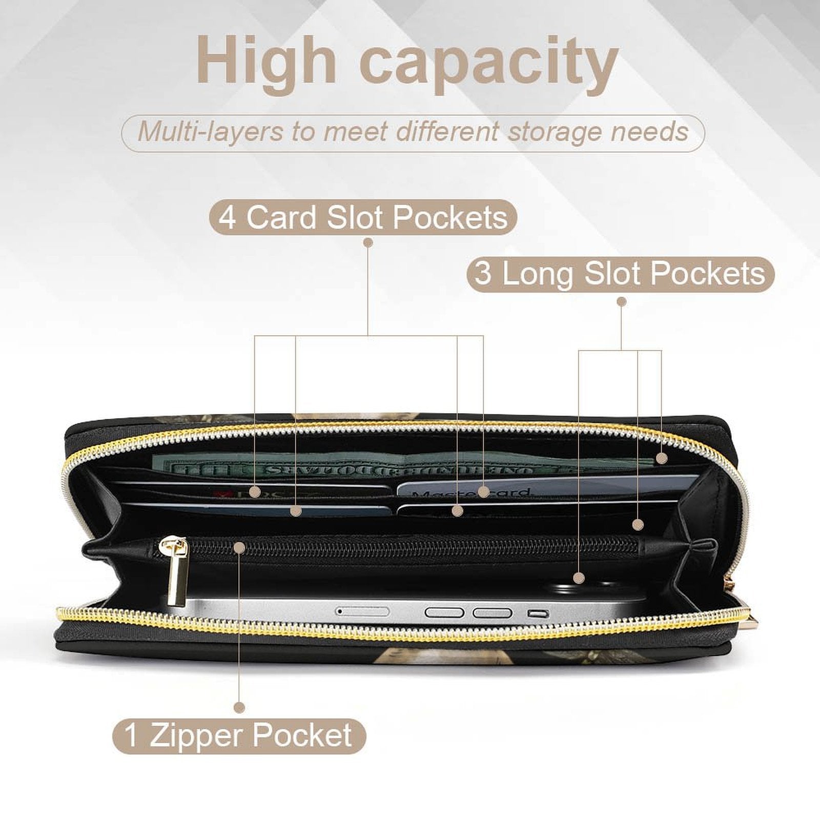 - Features: 4 card slots, 3 long pockets, 1 zipper pocket