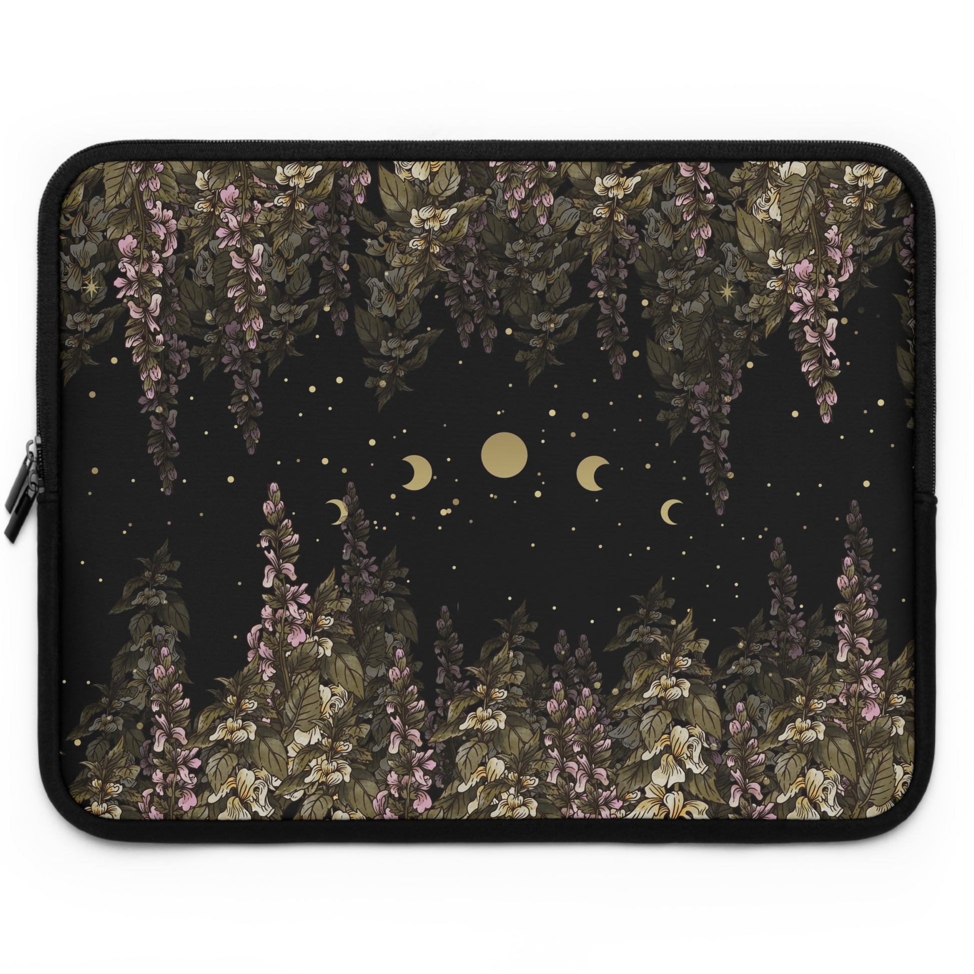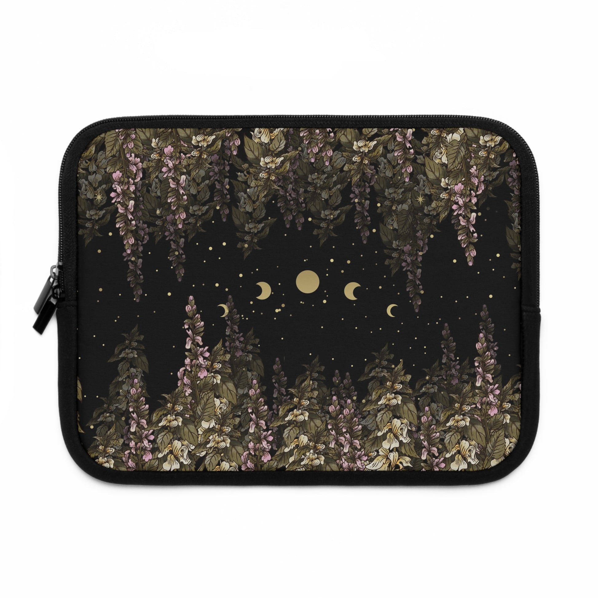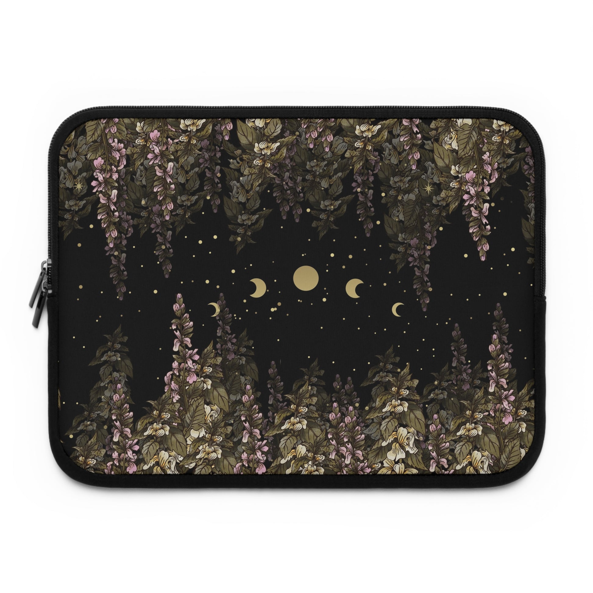 Dark Cottagecore foxglove moon phase laptop sleeve, Boho witch laptop case iPad tablet cover, laptop travel case, laptop padded bag carrier Made for transferring laptops in the coolest way possible, this personalized laptop sleeve is a dream come true for anyone working on the go or travelling.